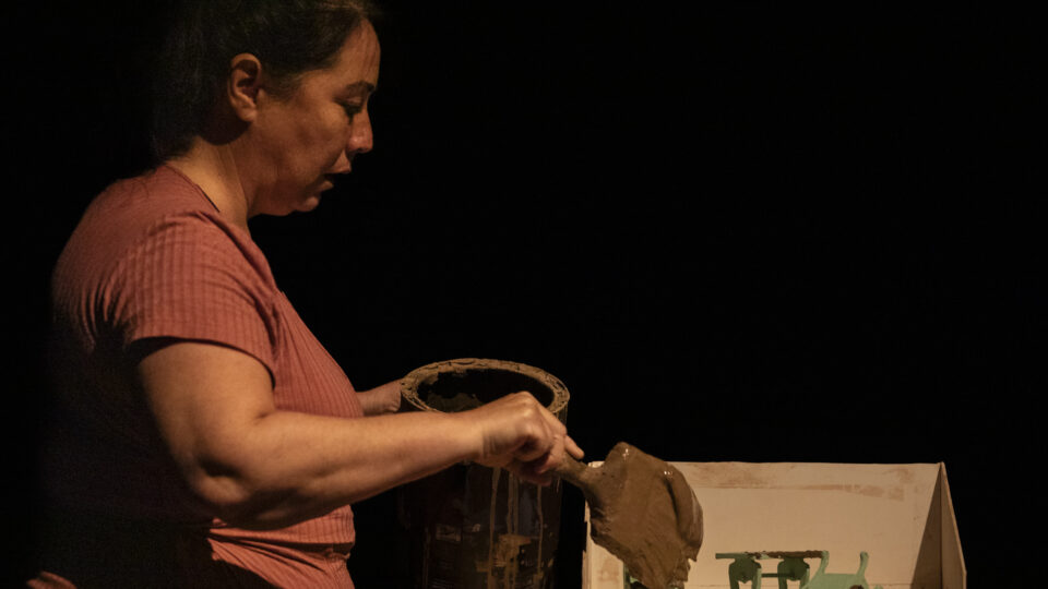 -El proceso de creación de obra fue muy acelerado. Si bien, como decíamos, nosotros veníamos acopiando materiales para tratar este tema hacía tiempo, metimos toda la carne al asador. Y con una dinámica propia de Hasta las manos que era la de convocar a un director extranjero, no solo de la ciudad, sino también de nuestras prácticas, alguien que nos pudiera provocar. En este caso, fue Javier. Nosotros tenemos formas de hacer la cosas y estrategias ya acumuladas con los años del grupo, pero siempre invitamos a alguien que nos saque de ese lugar de comodidad. Esta obra también nos provocaba sobre una memoria un poco más estática que teníamos de lo que había sido la inundación por haberla vivido. Una de las potencias que teníamos nosotros era que la obra no podía ser ni solemne ni tampoco banalizar el tema y así se creó, en la tensión entre toda esa provocación y el conocimiento acumulado de un grupo.